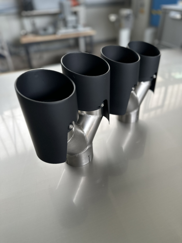 Alle Bauteile der Abgasanlage werden  von Hand bei uns gefertigt, WIG- geschweißt und formiert um höchstem Qualitätsanspruch gerecht zu werden.