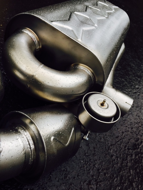 Nach vielen Tests mit elektrischen Klappen hat sich gezeigt das eine Klappe nicht ausreichend Kraft aufbauen kann um dem Gasdruck des VZ310 Motor im Stand und beim Anfahren zu widerstehen, Folge sind unschöne Geräusche und nervtötendes Klappern der Klappen ( wie Serie) im geschlossenen Zustand im Stand und wärend der Fahrt. Als Abhilfe haben wir ein neues System aus 2   Klappen und einem Dämpfer entwickelt der all die Störgeräusche schluckt und dem R einen echten PRIUS Modus bei Klappe ZU verhilft. Messungen haben ergeben das die Anlage bei Klappe zu leiser war als Serie was die ganze Anlage im Alltag sehr angenehm fahrbar macht. Im Innenraum tritt keinerlei DRÖHNEN auf das wird durch das System komplett absorbiert.  Die Klappen werden durch unsere CAN Steuerung selbständig geregelt.
