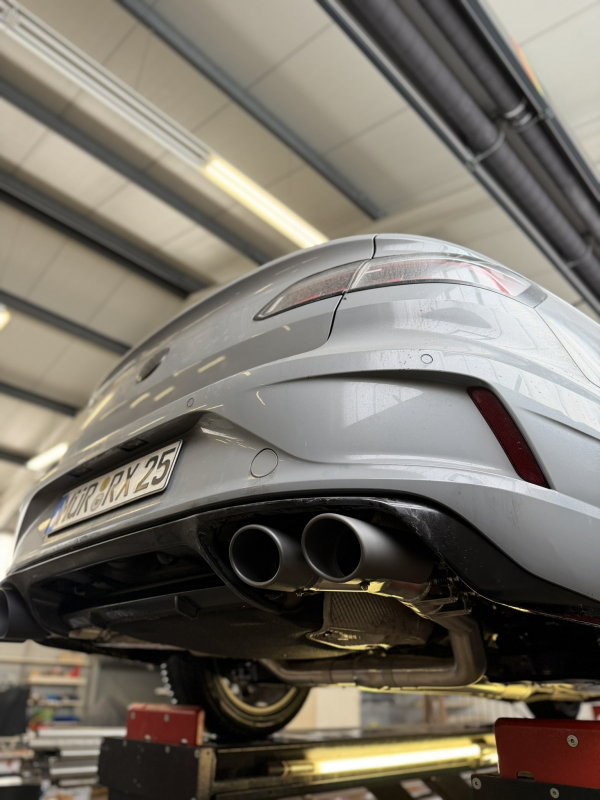 Wir entwickeln unsere Abgasanlagen auf unserem hauseigenen Allrad-Leistungsprüfstand, als Teil eines Performance Paketes.Die Anlagen können in der Regel durch eine Downpipe mit höherem Durchsatz / ThermoIsolierung  und ein geändertes Intake zum Performance Paket ergänzt werden. Abgerundet wird dies durch eine anpasste Programmierung / Abstimmung auf dem Prüfstand. Die Downpipes / Abgasanlagen entwickeln wir nicht als einzelne Bauteile sondern so das die gesetzlichen Vorgaben auch im Verbund mit Downpipe / Intake / Leistungssteigerung eingehalten werden und somit eine Eintragung aller Bauteile im Verbund möglich ist. Dafür werden die Systeme ausgiebig auf dem Prüfstand getestet und dem TÜV und im Abgaslabor getestet.